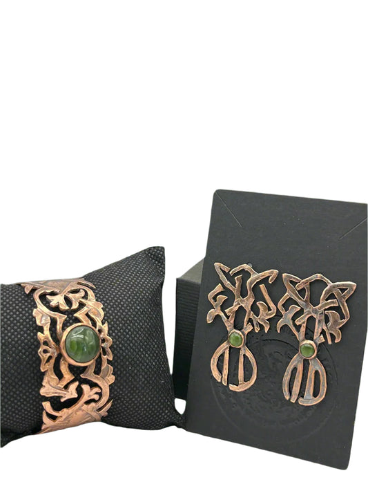 "New Celtic Knot" Pierced Copper and Nephrite Jade Earrings