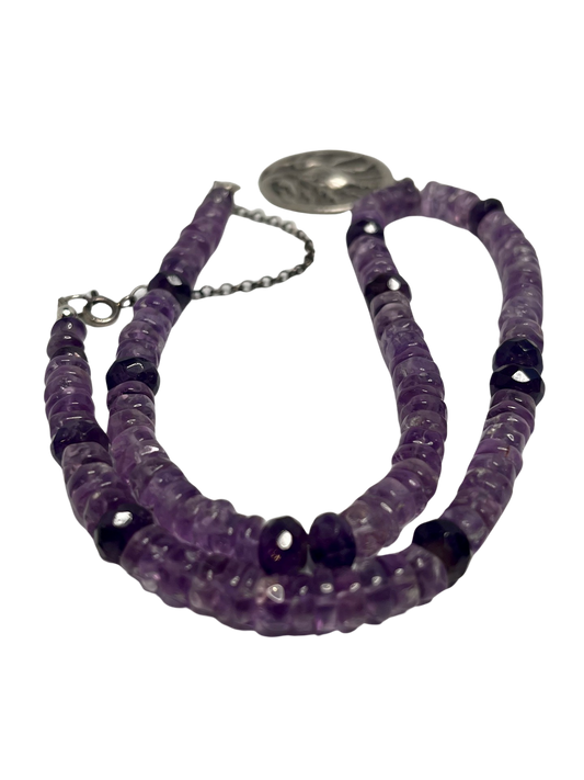 Sterling Silver Thistle Medallion and Amethyst Necklace