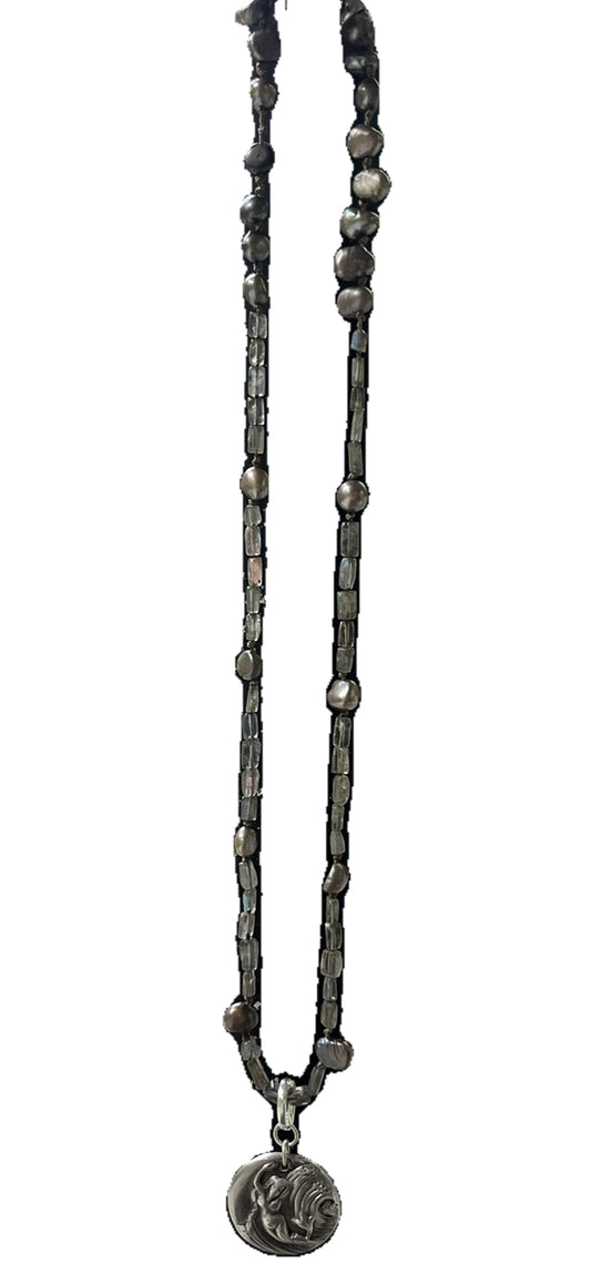 Labradorite and Silver Pearl Choker 18"