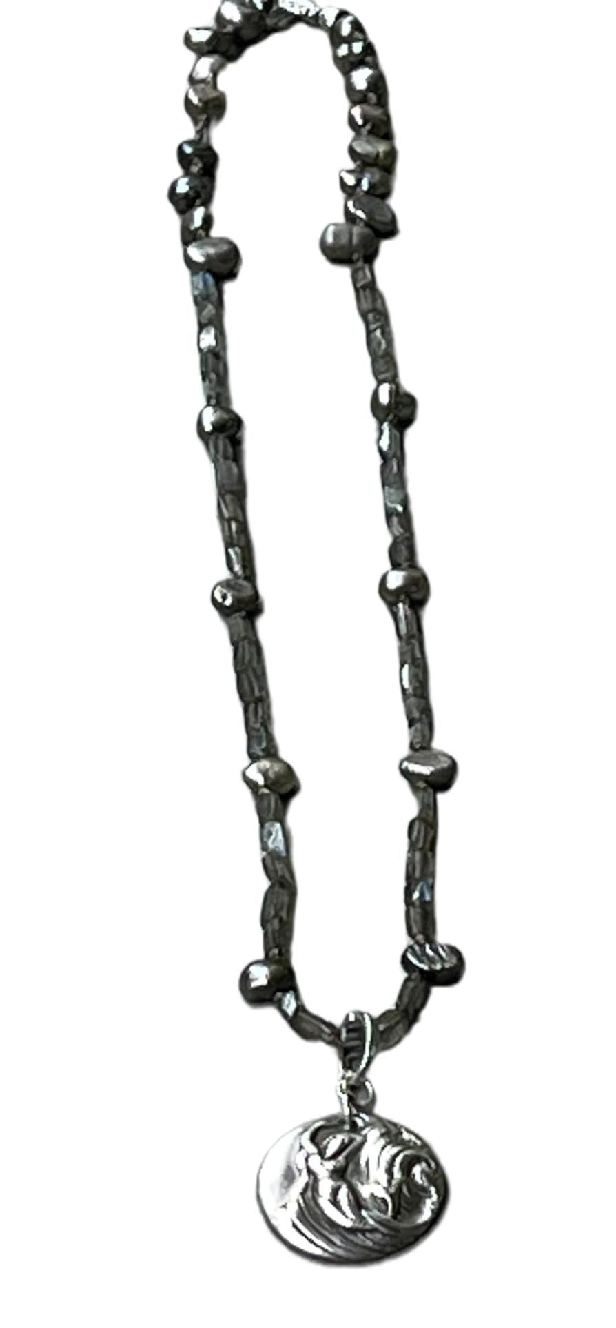 Labradorite and Silver Pearl Choker 18"