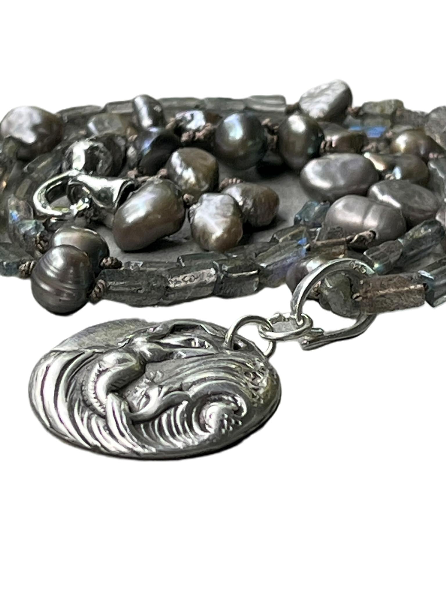 Labradorite & Silver Pearl Choker
