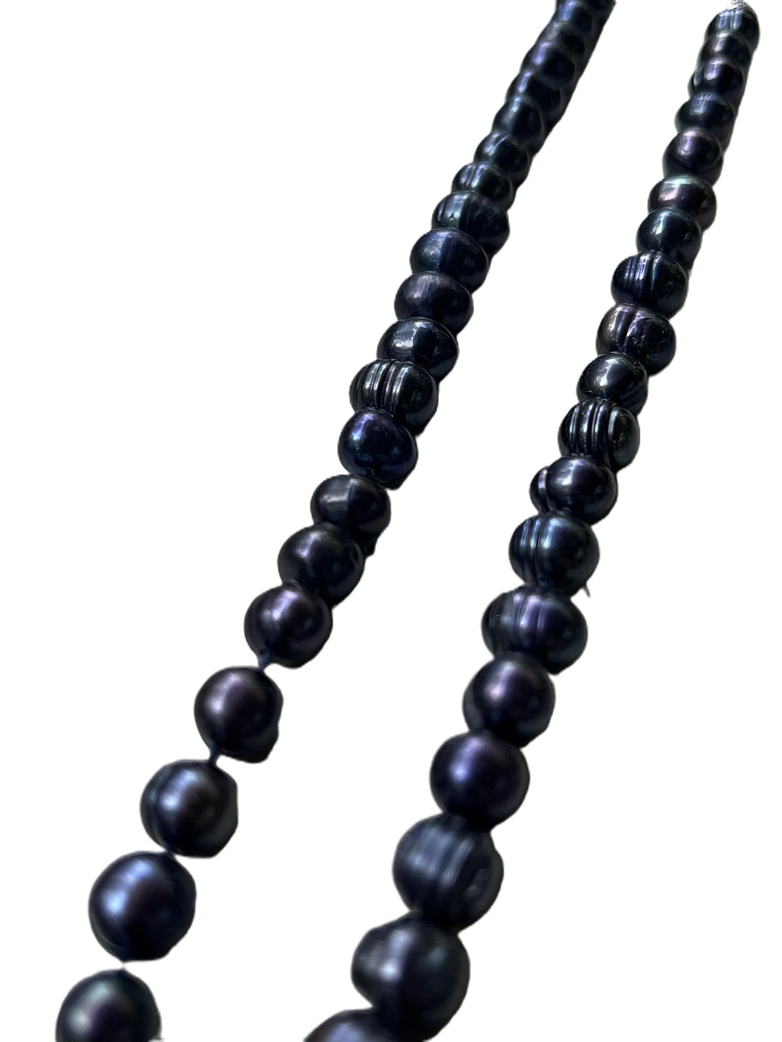Pair this dramatic strand with your talisman on a silver pearl enhancer, or let it smolder solo. Either way, this string feels bold, mysterious, and just a little decadent. Something I think you’re going to like.