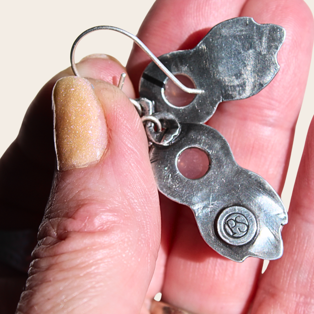 - Materials: Lead-free pewter, rose quartz cabochons, sterling silver ear wires
